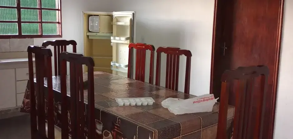 Possui Casa residencial com 03 quartos, com Camas e Armários de Alvenaria, Sala com Armário de Alvenaria, Cozinha com pia e Fogão à Lenha, Copa com Pia, Banheiro com Box e Armarinhos e 1 Cozinha Externa com Fogão à Lenha.