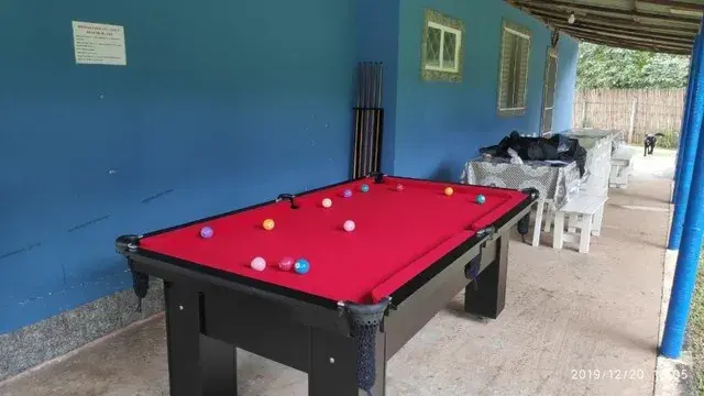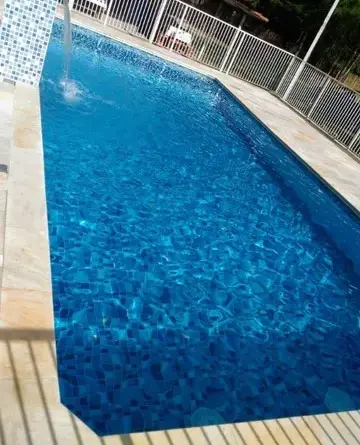Uma piscina com 8x4 metros e um Campo de Futebol.