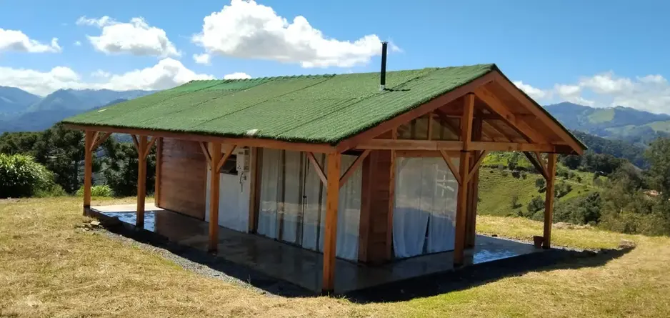 Casa feita de madeira e vidro. Com excelente acabamento