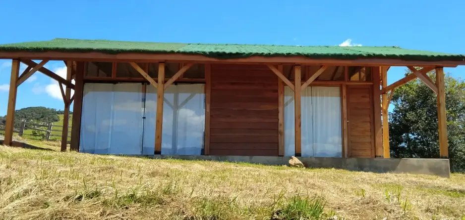 Sítio possui uma bela casa. Recém-construída com sala e cozinha americana. Banheiro e quarto. Varanda