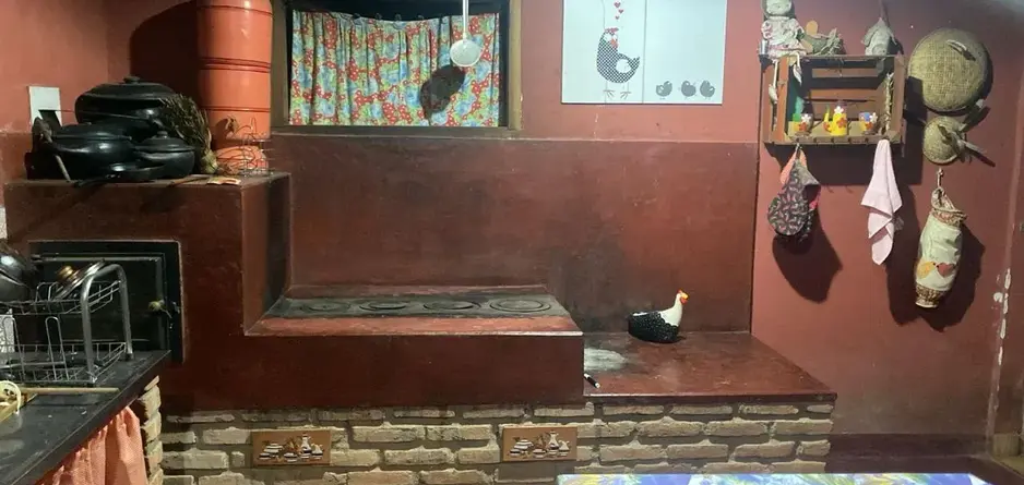 Cozinha com fogão a lenha